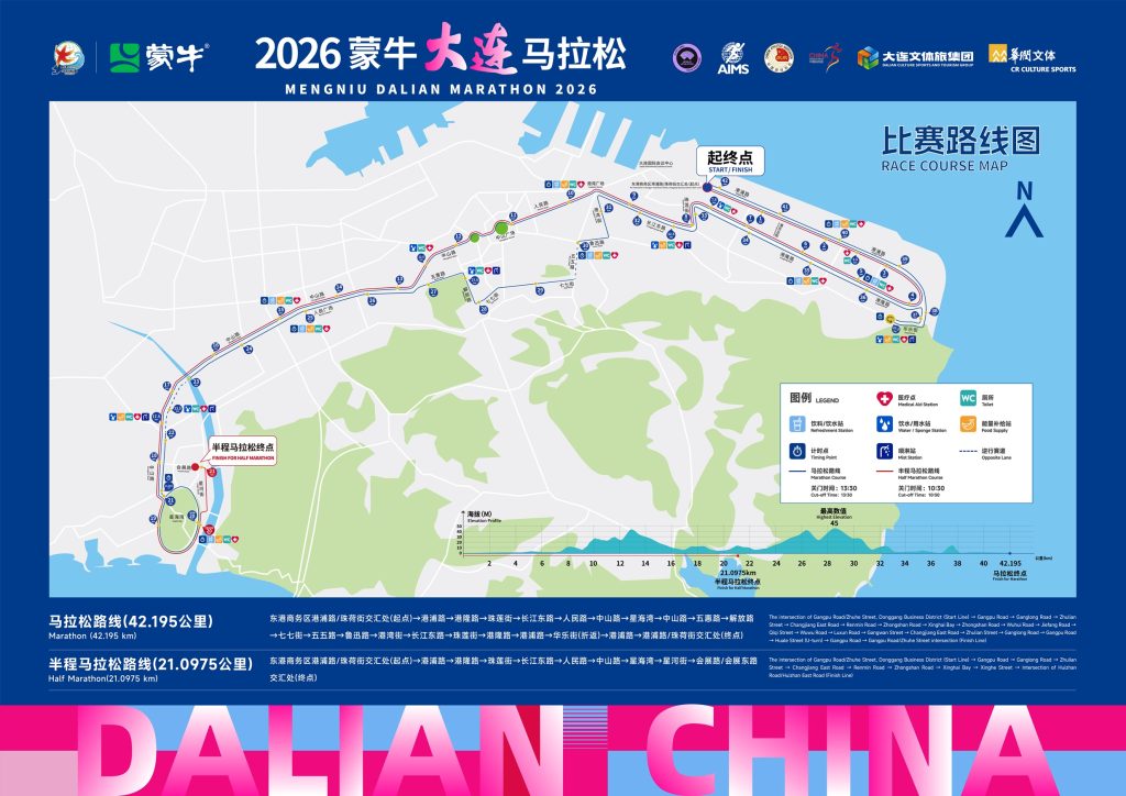 大连马拉松创办于1987年,是中国历史最悠久的马拉松赛事之一,有”大马”之称。本届赛道延续经典路线,整体呈现”穿城越海、地标串联、起伏有致”的特色,完美融合大连”山海相连”的城市风貌。