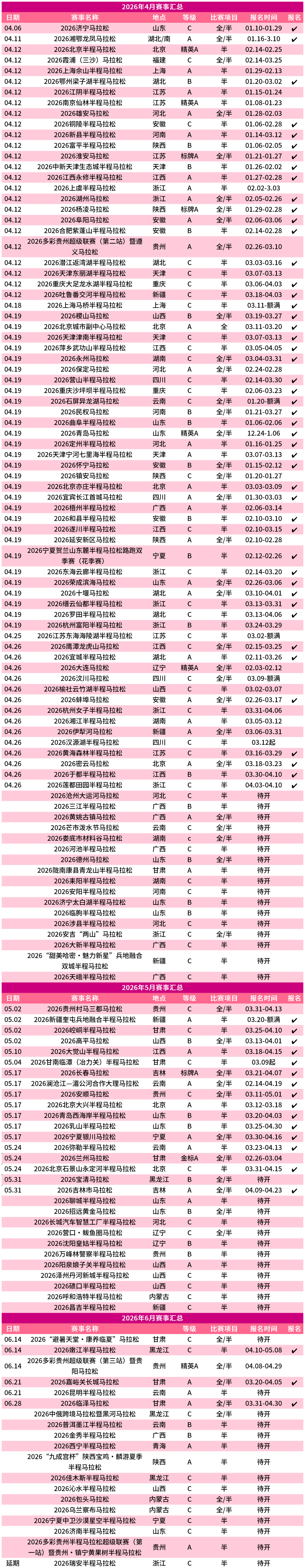 2026上半年马拉松赛事